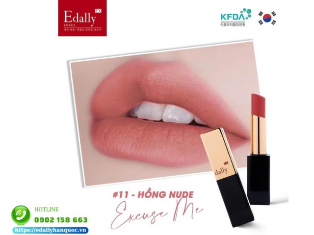 Son môi Collagen Edally EX màu 11 Excise Me - Hồng Nude Sexy: Hồng nude là sự kết hợp tinh tế giữa nét đẹp tự nhiên và vẻ quyến rũ tinh tế. Sở hữu màu son số 11 sẽ giúp các cô nàng trở nên sang trọng, thời thượng hơn bao giờ hết.