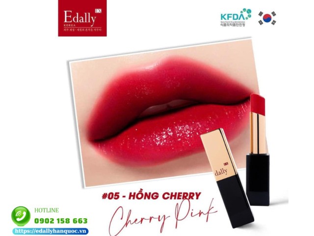 Son môi Collagen Edally EX Màu 05 Cherry Pink - Hồng anh đào phù hợp với phong cách trang điểm hàng ngày, mang lại sự nữ tính và ngọt ngào cho người dùng. Cherry Pink là biểu tượng của vẻ đẹp nữ tính, ngọt ngào và thuần khiết. Dù ở sắc thái nào, sắc son này cũng dễ dàng làm tôn lên màu da.