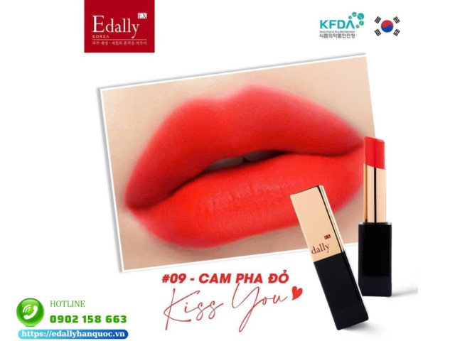 Son môi Collagen Edally EX màu 09 KissYou - Cam đỏ năng động: Sự kết hợp hài hòa giữa màu cam tươi sáng và đỏ quyến rũ, là biểu tượng cho sức mạnh và sự quyết đoán. Tô lên đôi môi màu son số 09 là sự đầu tư cho một ngày đầy năng lượng và thành công.